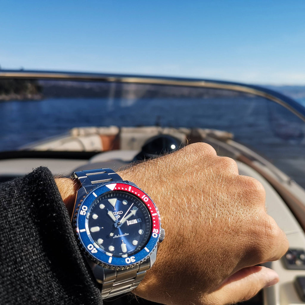 The Seiko 5 Sport Automatic 100M Men's Watch is the perfect accessory for any occasion. With its sleek and stylish design, this watch is sure to turn heads. The stainless steel case and bracelet are durable and comfortable, while the black dial and luminous hands make it easy to read the time. The automatic movement ensures accuracy and reliability, and the 100M water resistance rating makes it suitable for swimming and snorkeling. Whether you're attending a formal event or just going out for a night on the town, this watch will be sure to make a statement.