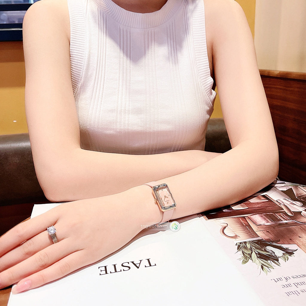 This watch by Swarovski is a great example of sophisticated design. It features a single, brilliantly faceted crystal in a rectangular shape, set into a rose gold-tone PVD coated case, while the pink sunray dial is adorned with sparkling crystal index markers. A pink Italian calf-skin leather strap complements the dial beautifully. This Swiss Made watch adds a sophisticated yet casual touch to every occasion.- Article no.: 5547719