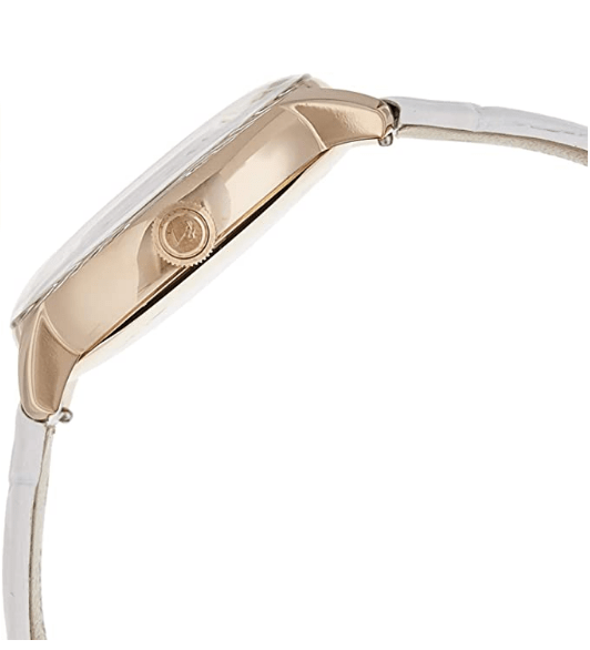 - That is modern charm with Faszinierendem Retro Flair. The stainless steel case in red gold glossy finish and the white leather strap provide for great rich user experience. Specifications: Case – 38 mm, water resistant to 50 m depth, Quartz Movement Swiss Made
