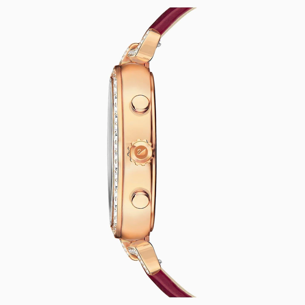 - Glamorous combining a rose gold coated case with a ruby colored genuine leather strap. This sophisticated chronograph watch has a timeless yet daring appeal.