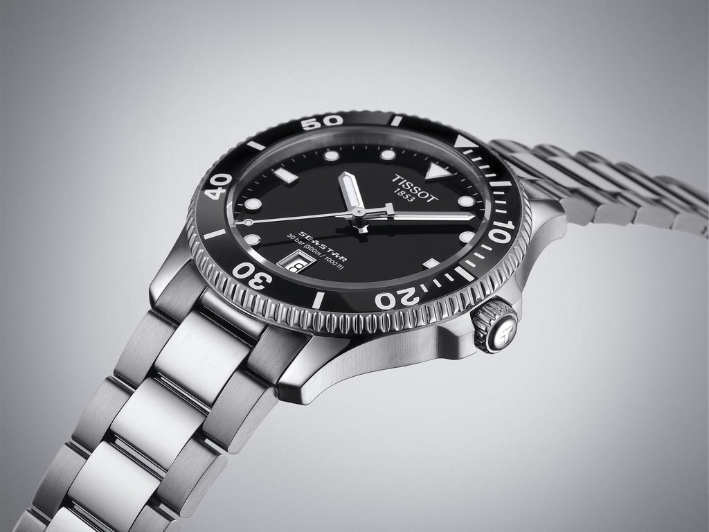 Tissot Seastar 1000 Lady Black Dial Silver Steel Strap Watch for Women - T120.210.11.051.00