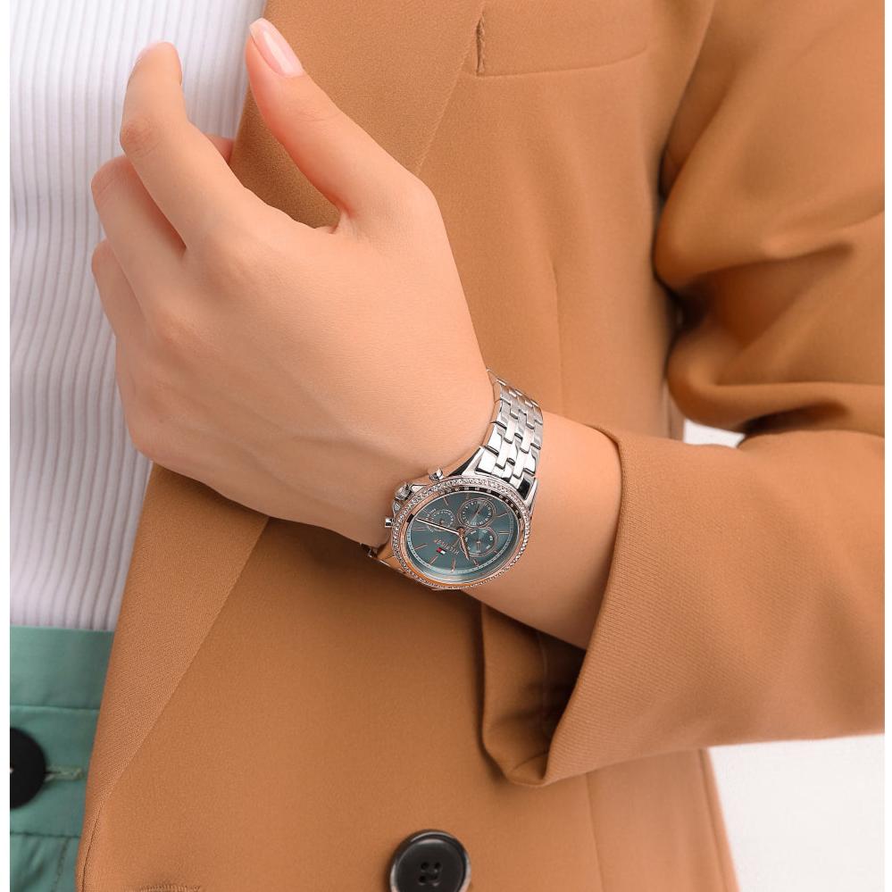 Tommy Hilfiger Ari Diamonds Blue Dial Silver Steel Strap Watch for Women - 1781976