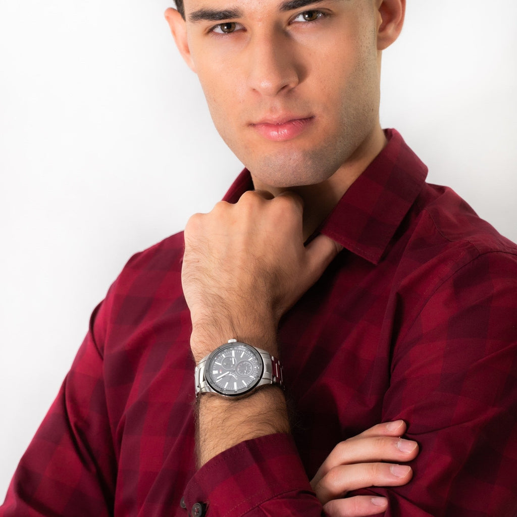 Introducing the Tommy Hilfiger Austin Black Dial Silver Steel Strap Watch for Men - 1791639. Featuring a sleek black dial and silver steel strap, this watch is perfect for the modern man who values style and functionality. With its superior quality and timeless design, this watch is the perfect accessory for any outfit.