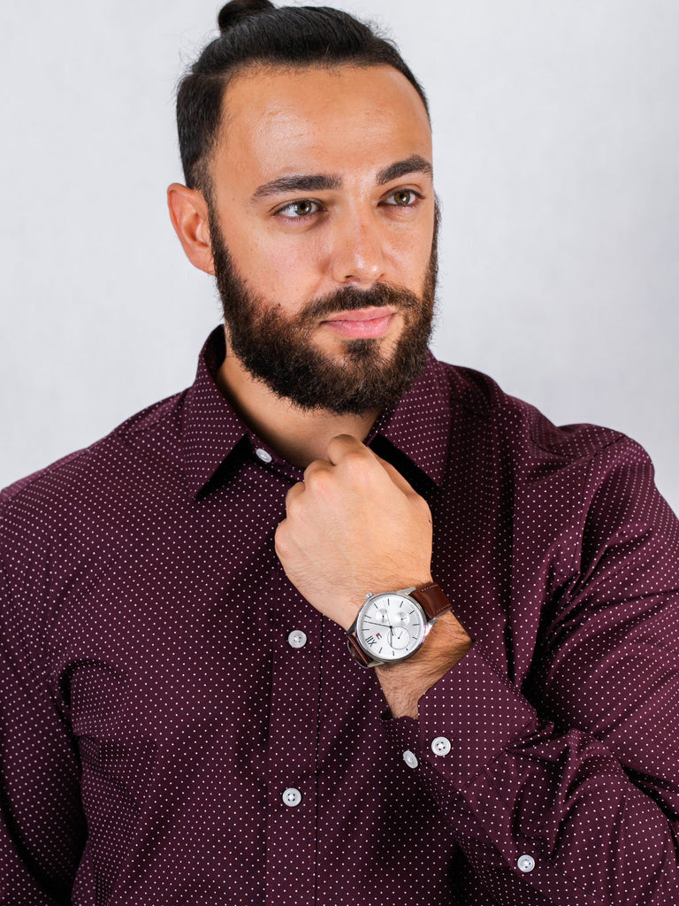 This fashionable and classic watch matches any outfit at any occasion, it adds style to your life -The watch has a calendar function: Day-Date,24 hour displayHigh quality 21 cm length and 19 mm width Brown Leather strap with a Buckle