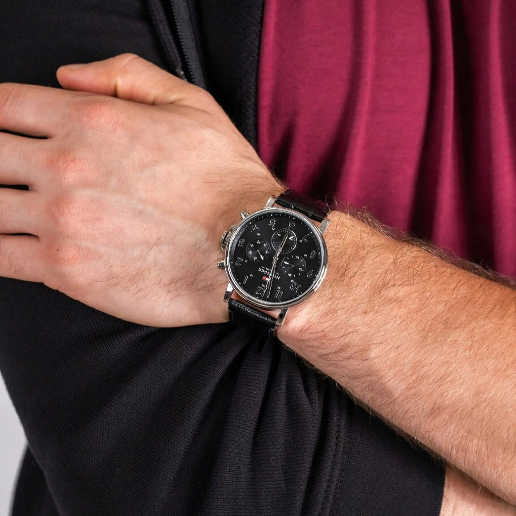 Tommy Hilfiger Daniel Black Dial Black Leather Strap Watch for Men - 1710381