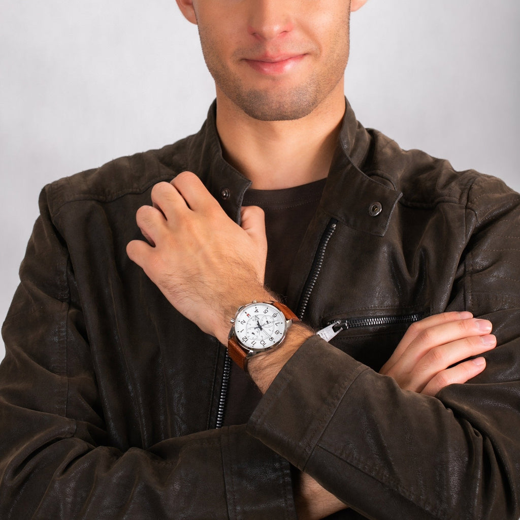 Tommy Hilfiger Dean Quartz Multifunction White Dial Brown Leather Strap Watch for Men - 1791274