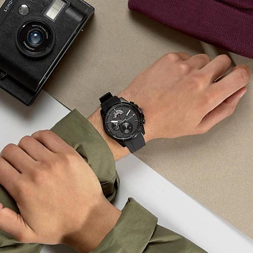 The Tommy Hilfiger Men's Black Dial Rubber Band Watch - 179.1352 wraps around your wrist nicely to offer you an exceptional wearing comfort. It features a sleek, stylish design that enables you to pair it up with almost any attire, while the Rubber band offers a secure fit. Made to up the ante on your day-to-day ensembles, the 179.1352 watch complements your urban lifestyle.