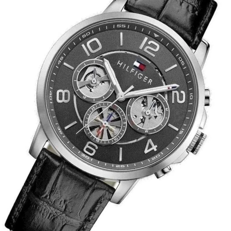 This Tommy Hilfiger Keagan Grey Dial Leather Strap Men's Watch 1791289 comes in transparent Sub-Eyes, Durable mineral crystal protects watch from scratches, Quartz Movement, Case Diameter: 44mm, Water resistant to 50m (165ft: in general, suitable for short periods of recreational swimming, but not diving or snorkeling