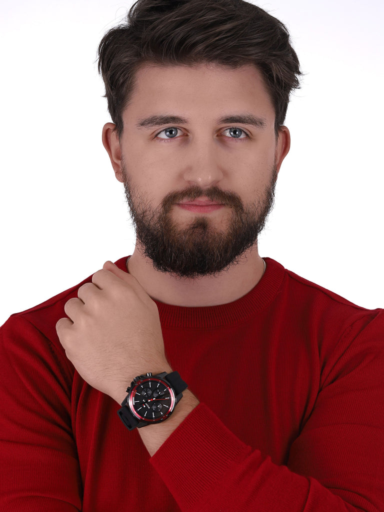 Step up your style game with the Tommy Hilfiger Mason Black Dial Black Rubber Strap Watch for Men. Featuring a sleek black dial and rubber strap, this watch offers both style and function. With its durable design, it's perfect for everyday wear, making it a must-have for any man's wardrobe.