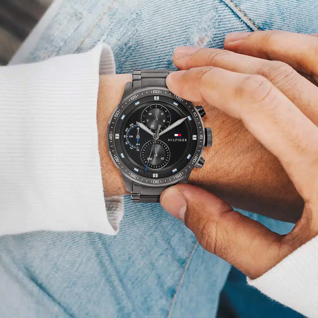 Tommy Hilfiger Trent Chronograph Grey Dial Grey Steel Strap Watch For Men - 1791806