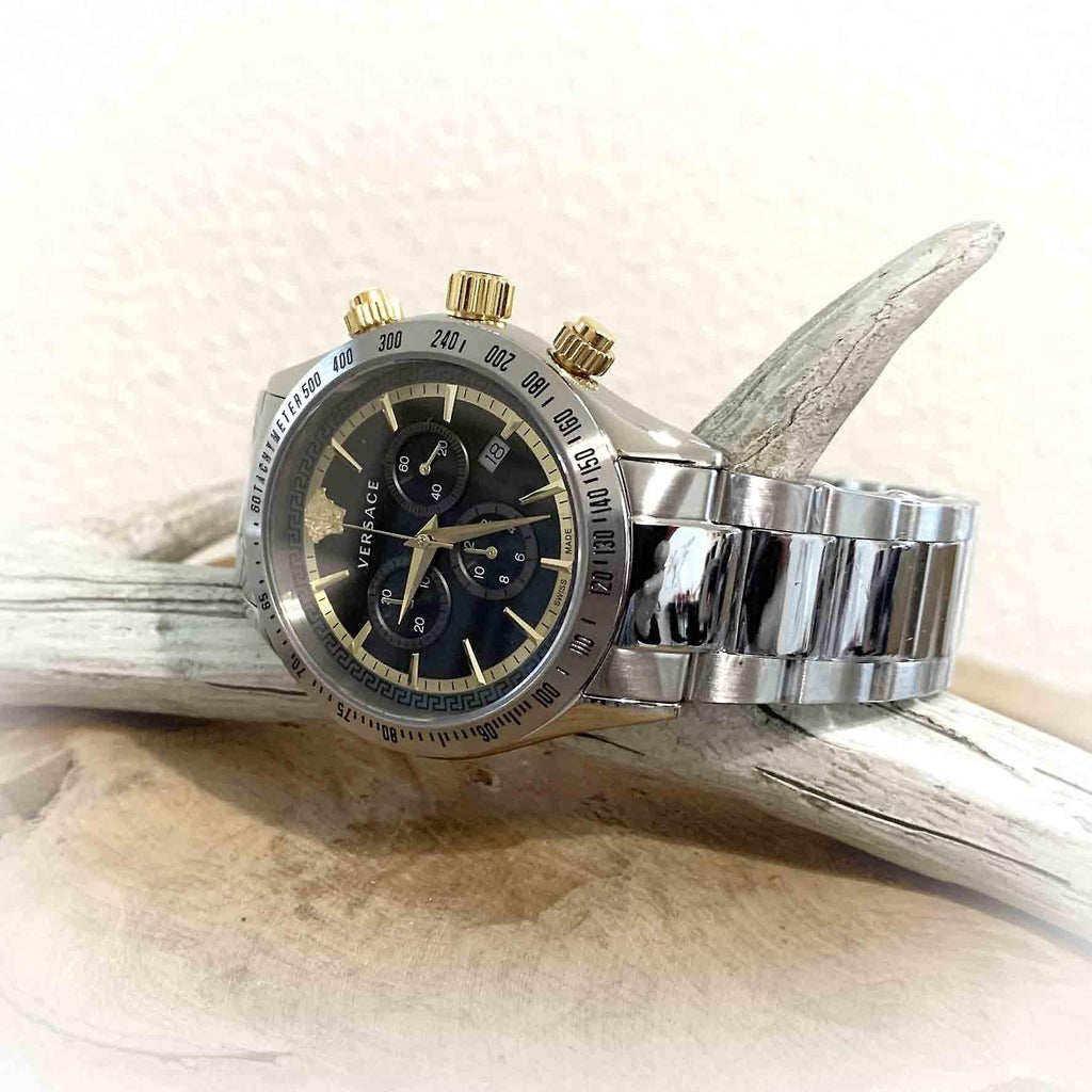 At the heart of this timepiece is an quartz movement (with battery) that, as is usual for Versace watches, guarantees precise timekeeping and provides the following functions: chronograph, date, minute, second, hour.