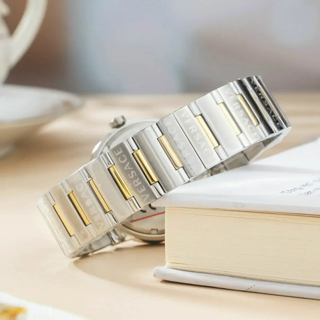 Versace Hellenyium Green Dial Two Tone Steel Strap Watch for Women - VEVH00620