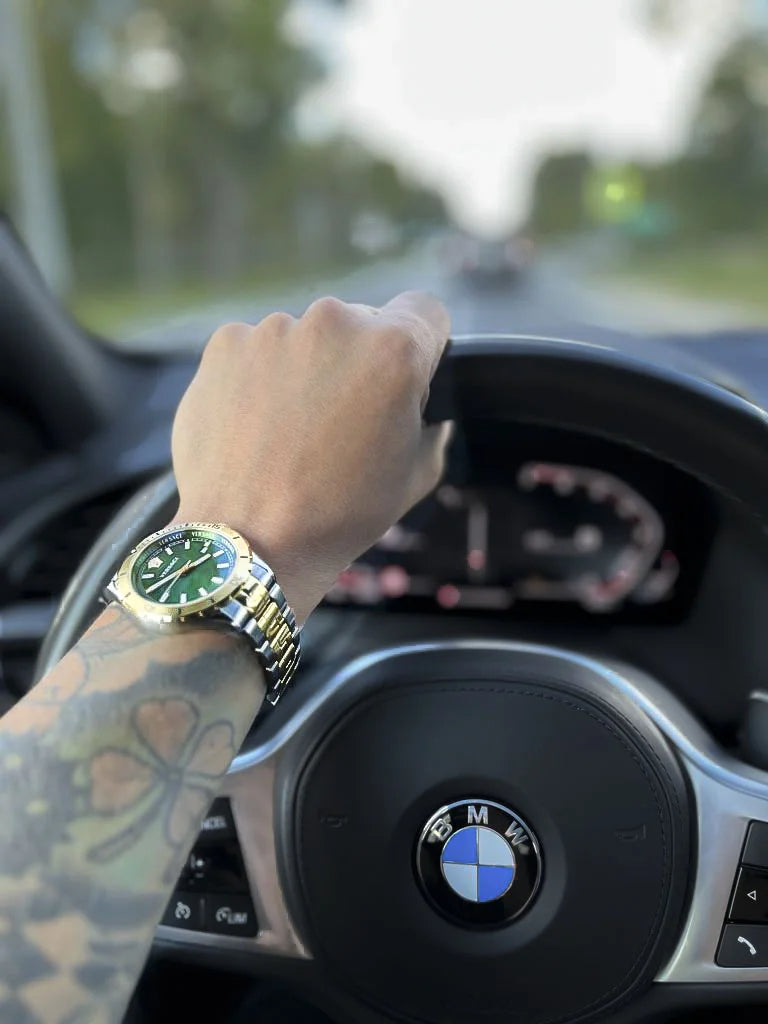 The anti-reflecting, saphire glass offers extensive protection against accidental scratches and damage. Underneath, the dial of your new dream watch is green.