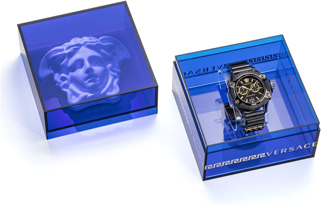 The coolest watch that meets the anticipation of an audience looking for something new and trendy. The Icon Active conveys an urban and sporty look with its transparency and color. Absolutely and exquisitely iconic, design elements include the metal loop on the strap that recalls the Greek Key, a Medusa at 12H and an internal Greek Key that can be seen from the curvature of the inner dial ring.