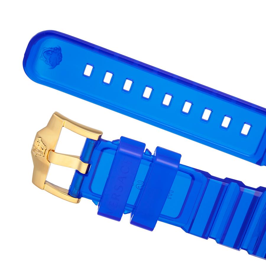 The coolest watch that meets the anticipation of an audience looking for something new and trendy. The Icon Active conveys an urban and sporty look with its transparency and color. Absolutely and exquisitely iconic, design elements include the metal loop on the strap that recalls the Greek Key, a Medusa at 12H and an internal Greek Key that can be seen from the curvature of the inner dial ring.