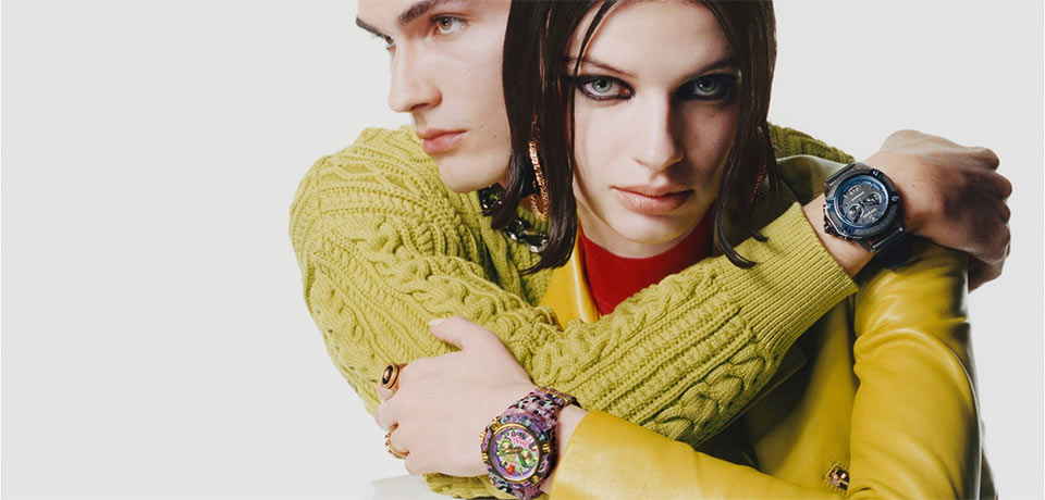 The coolest watch that meets the anticipation of an audience looking for something new and trendy. The Icon Active conveys an urban and sporty look with its transparency and color. Absolutely and exquisitely iconic, design elements include the metal loop on the strap that recalls the Greek Key, a Medusa at 12H and an internal Greek Key that can be seen from the curvature of the inner dial ring.