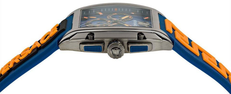 Versace Iconic Dominus Chronograph Blue Dial Blue Rubber Strap Watch For Men - VE6H00323