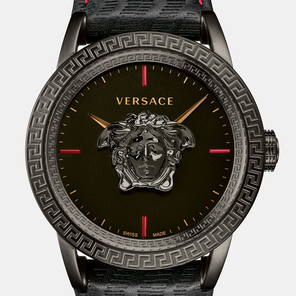 Versace Palazzo Empire Black Dial Black Leather Strap Watch for Men - VERD00218