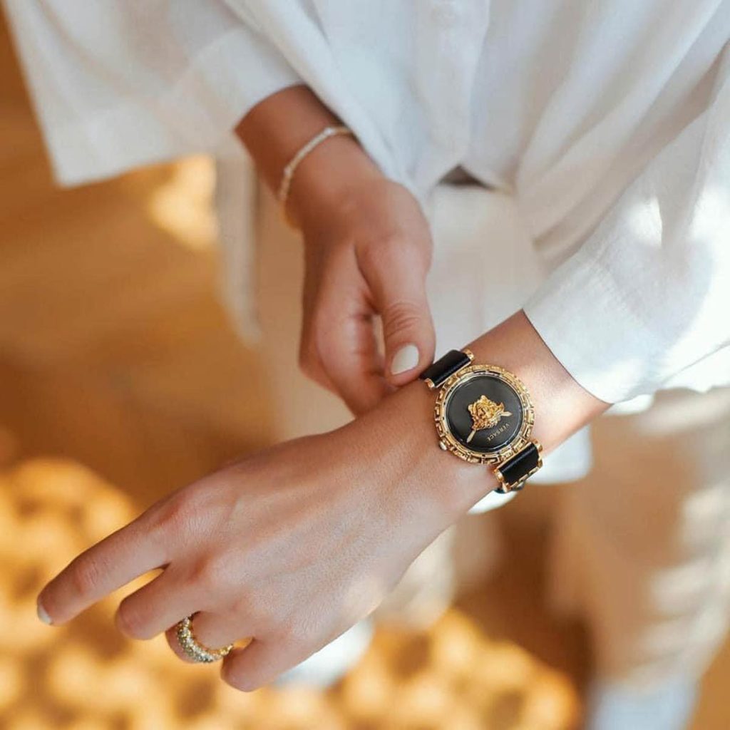 Elevate your style with the Versace Palazzo Empire Greca Watch for Women. With a sleek black dial and luxurious leather strap, this watch exudes elegance and sophistication. Its iconic Greca design and sturdy construction make it a statement piece that will last for years to come.