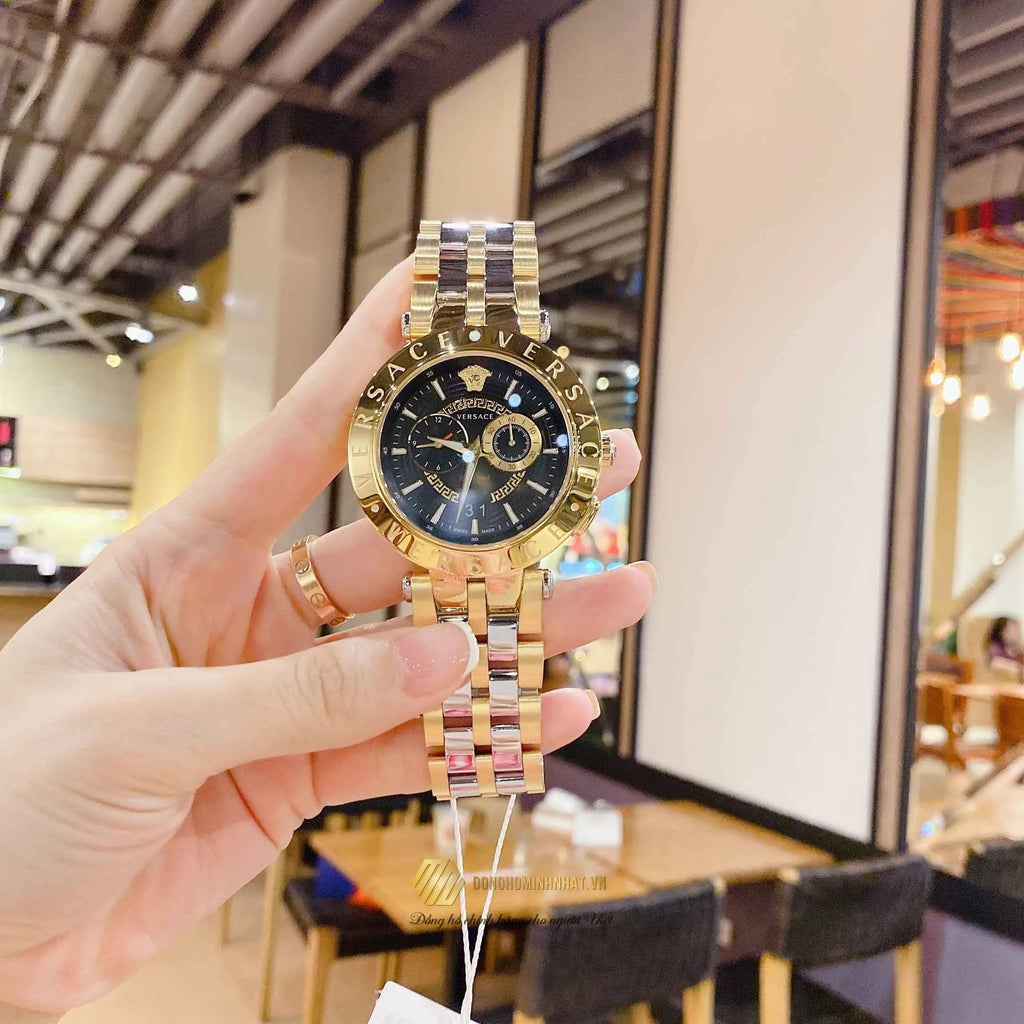 The Versace VEBV00519 V-Race has is a very stylish chronograph with a Swiss movement. The highly detailed dial has multiple layers and is highly visible thanks to the very hard and clear sapphire glass. The bi-colour link bracelet sits smoothly on your wrist and is easy to shorten with the included strap shortener.