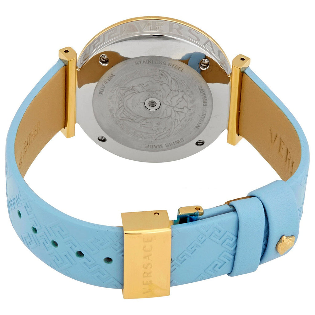 Dial: light blue with logo and Greca texture, Medusa at 12 o'clock