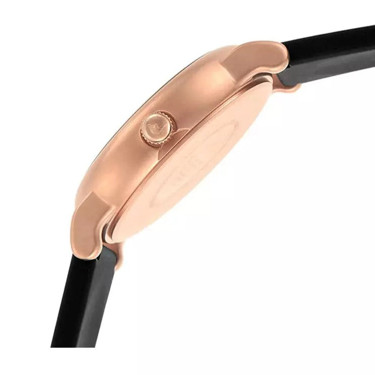 Emporio Armani AR11097 is a super very impressive Gents watch. Case material is PVD rose plating, which stands for a high quality of the item while the dial colour is Black. The features of the watch include (among others) a date function. This model has got 50 metres water resistancy – it can be submerged in water for periods, so can be used for swimming and fishing. It is not reccomended for high impact water sports.
