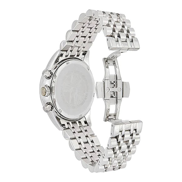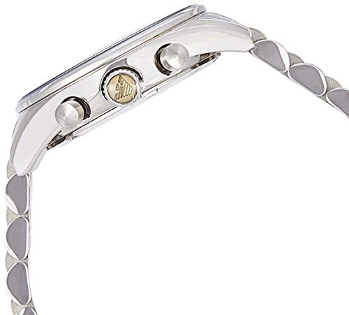 This analogue watch from Emporio Armani has a stainless steel strap in silver, complemented by a black dial. Please note, the dial for the Emporio Armani AR5984 men's watch has 39 mm in diameter. The quartz (battery) powered watch has chronograph / date functions and regarding water resistance, it withstands a pressure of up to 5 atm.