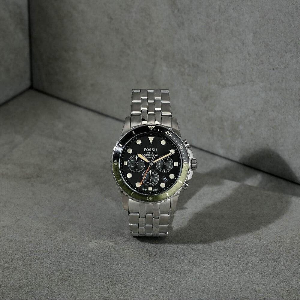 Fossil FB-01 Chronograph Black Dial Silver Steel Strap Watch for Men - FS5864