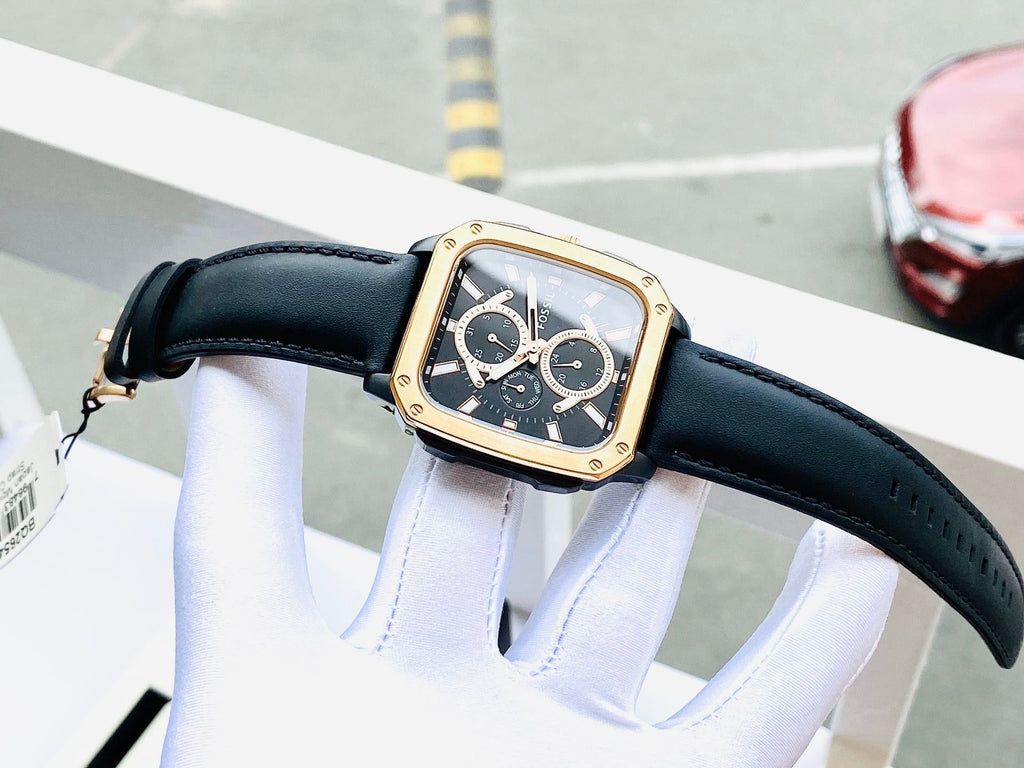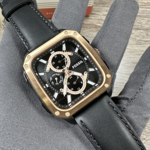 This Fossil watch showcases a sleek black leather strap and multifunctional black dial, perfect for the modern man. Timeless style meets functionality with this versatile timepiece.