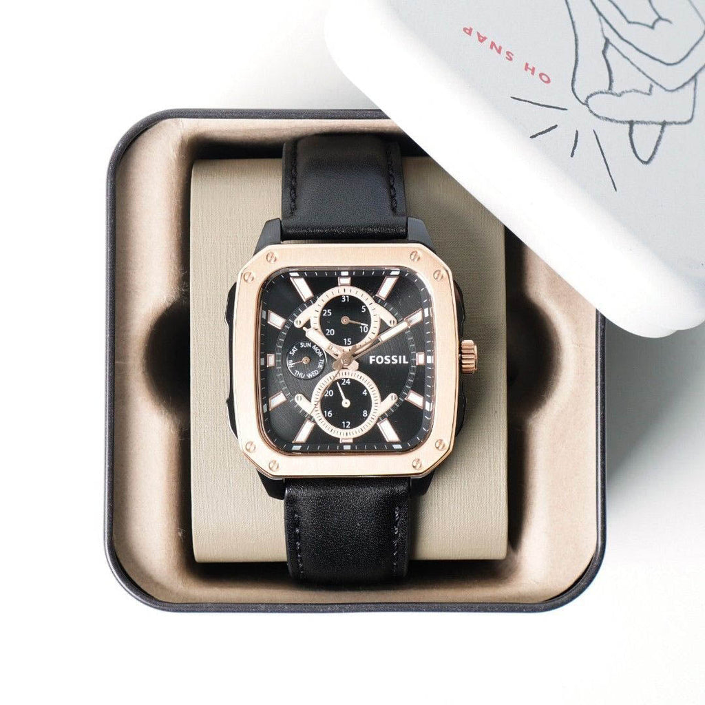 Fossil Multifunction Black Dial Black Leather Strap Watch for Men - BQ2654