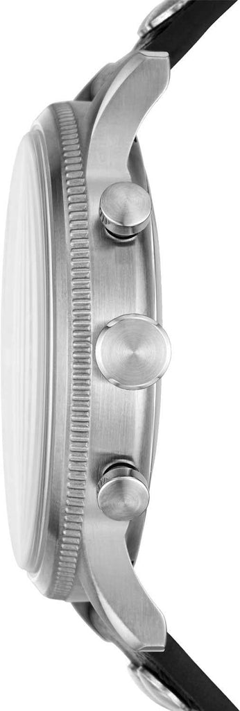 This 44mm Retro Pilot features a black matte dial, chronograph movement and black LiteHide™ leather strap.