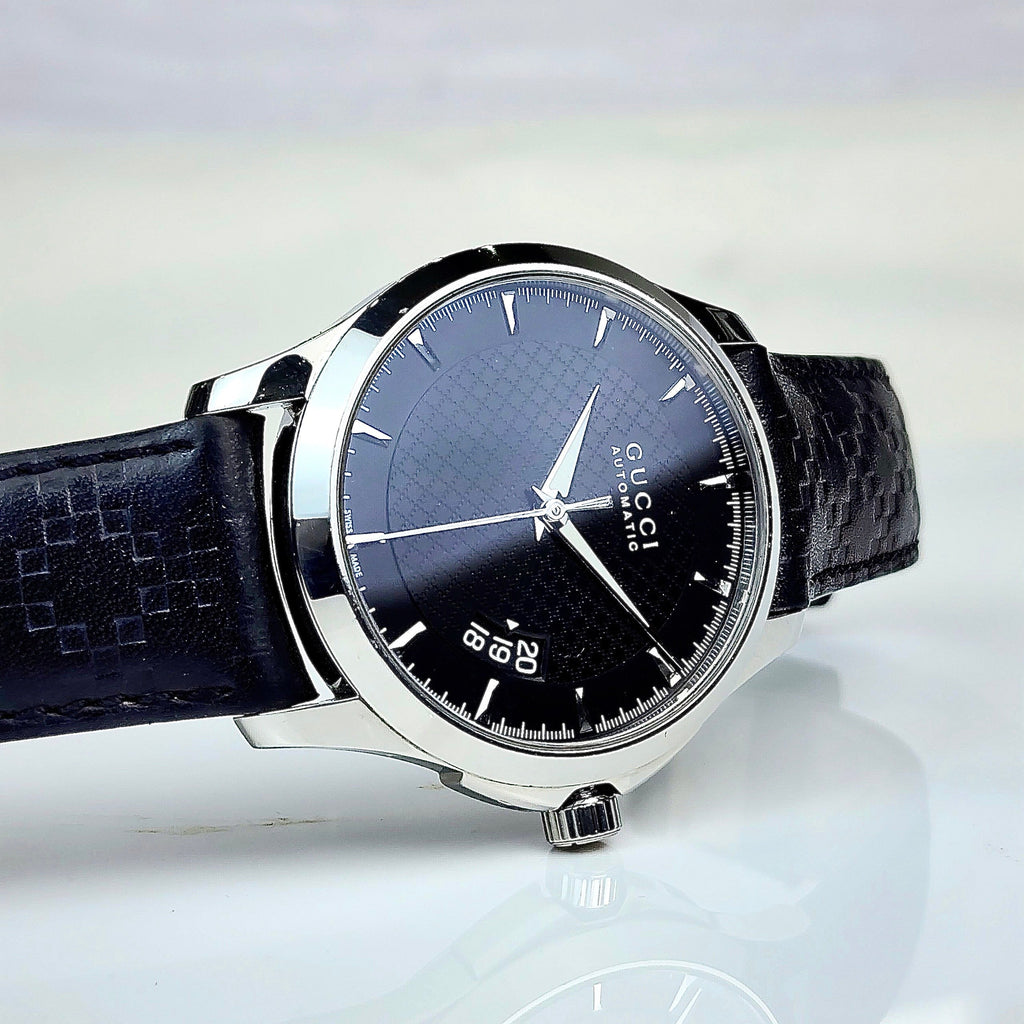 Gucci G Timeless Quartz Black Dial Black Leather Strap Watch for Men - YA126413