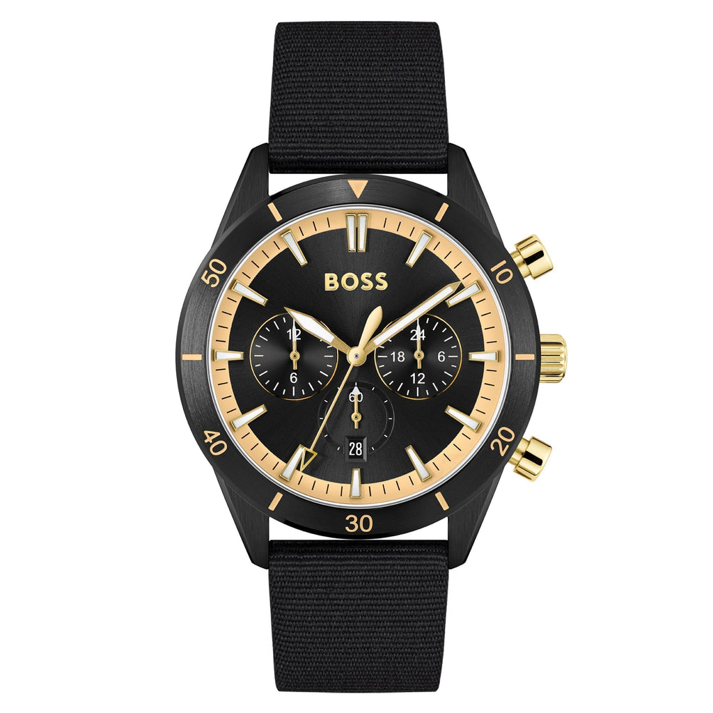 Hugo Boss Santiago Black Dial Black Nylon Strap Watch for Men - 1513935