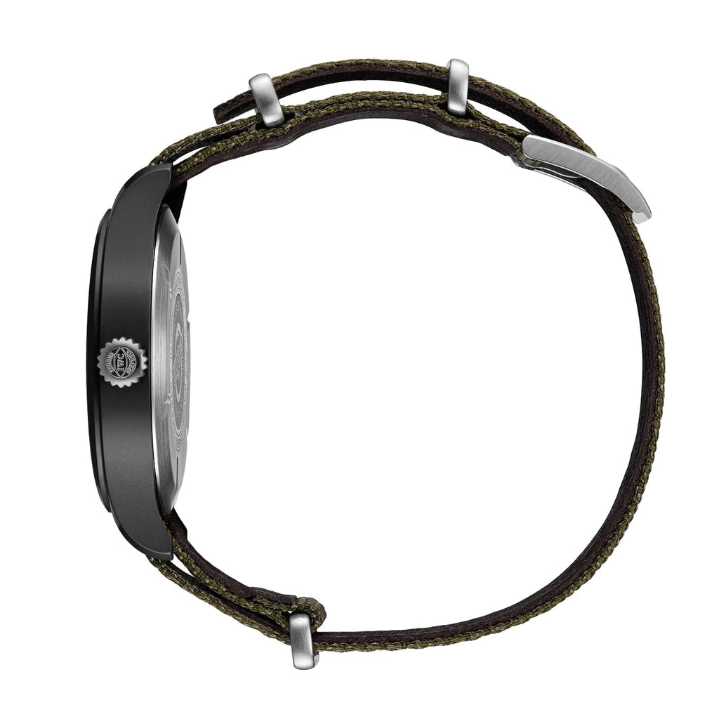 Like the military-exclusive version, this model features a case made of extremely hard and scratch-resistant black zirconium oxide ceramic and a black dial. Thanks to the luminous coating, the time can be read at a glance, even at night. A soft-iron inner case effectively shields the movement from the effects of magnetic fields. The iconic “TOP GUN” logo can be found on the dial at 9 o’clock and is also engraved on the Grade 5 titanium case back. The watch is fitted with an olive-green textile strap. The annual production of the Pilot’s Watch Mark XVIII TOP GUN Edition “SFTI” is limited to 750 pieces.