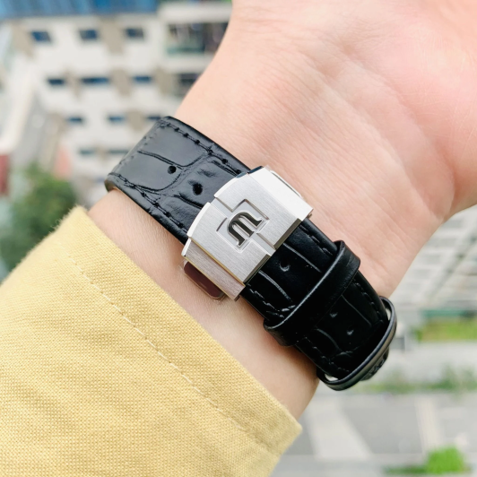 Maurice Lacroix Aikon Date Automatic Black Dial Black Leather Strap Watch For Men - AI6008-SS001-330-1