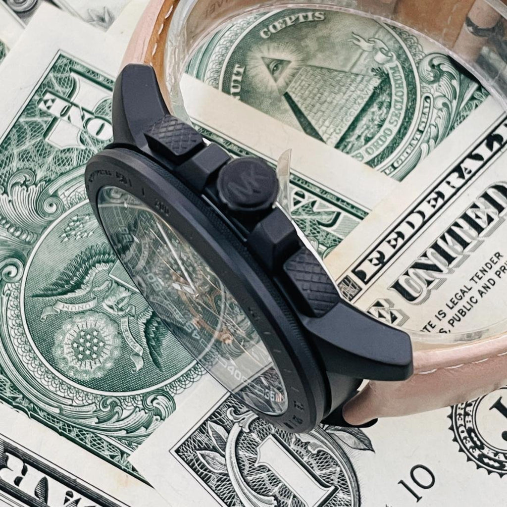 Michael Kors Ryker Chronograph Black Dial Beige Leather Strap Watch For Men - MK8520