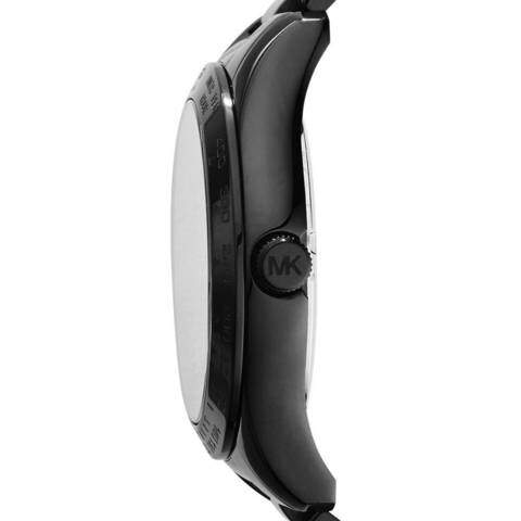 Ever see someone wearing a slick watch and get immediate "watch-envy" No more. New from Michael Kors comes this exquisite Layton timepiece. The black dial beckons for attention, and the black band is sure to stand out. The stainless steel materials used to make this watch ensure great quality, and 100 meters / 330 feet / 10 atm water resistance plus a mineral crystal will help protect your new precious from whatever dangers may come. Stop feeling the effects of watch-envy and buy this amazing timepiece today!