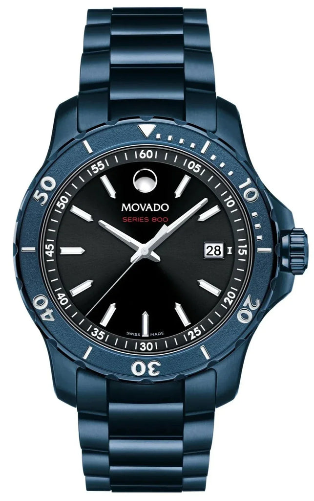 Movado Series 800 Black Dial Blue Ion Plated Steel Strap Watch for Men - 2600139