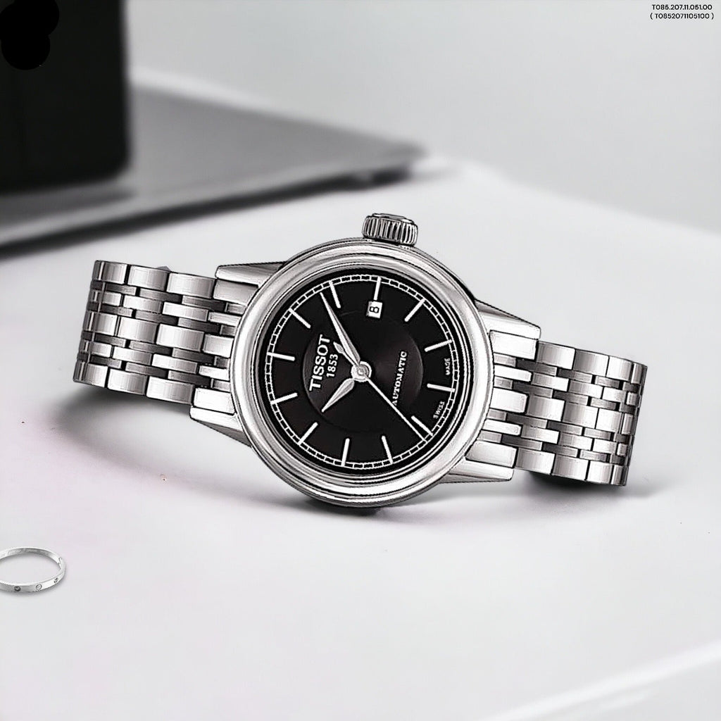 Tissot Carson Automatic Black Dial Silver Steel Strap Watch For Women - T085.207.11.051.00
