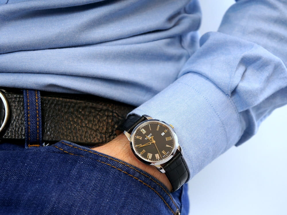 Tissot T033.410.26.053.01 Leather Strap Men’s Watch. The case is made out of Silver Stainless Steel with a silver bezel, which stands for the high quality of the item, it has a White Dial. This model has got 50 meters of water resistance. it can be worn in scenarios where it is likely to be splashed but not immersed in water and will be fine in rain. The watch is shipped with an original box and a guarantee from the manufacturer.
