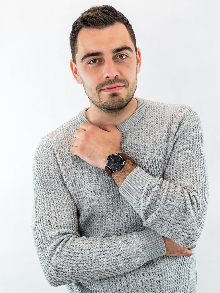 This watch has a bold new look with an intricate multi-function black dial. It's black-IP stainless steel case is complimented with a smooth brown leather strap.
