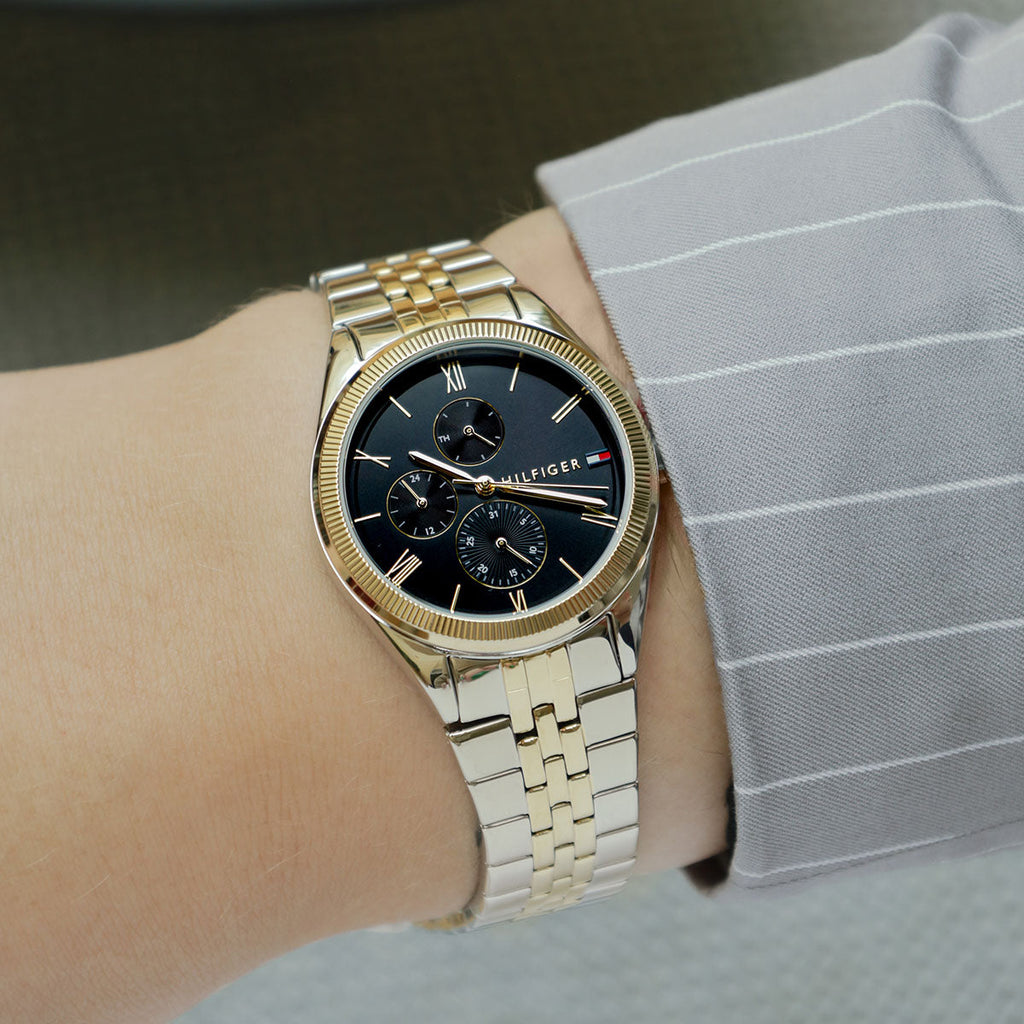 Tommy Hilfiger Monica Chronograph Black Dial Two Tone Steel Strap Watch For Women - 1782591
