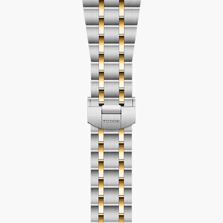 Surrounding the dial is a striking yellow gold notched bezel, a signature element of the Royal line. Powering this watch is a mechanical movement, Calibre T603, designed to provide a power reserve of up to 38 hours. It also features a 5-row integrated steel and gold bracelet with a folding clasp and safety catch.