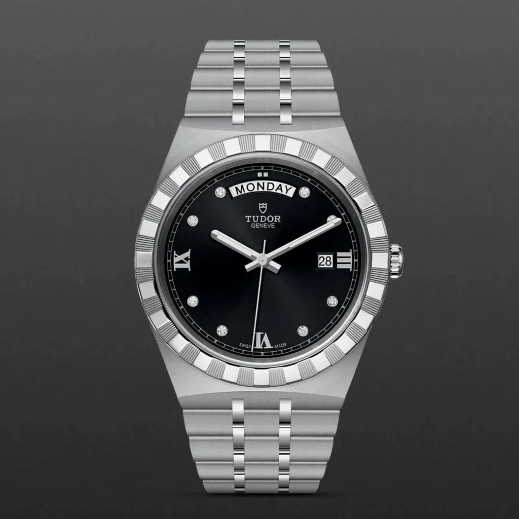 Tudor Royal Automatic Diamonds Black Dial Silver Steel Strap Watch for Men - M28600-0004
