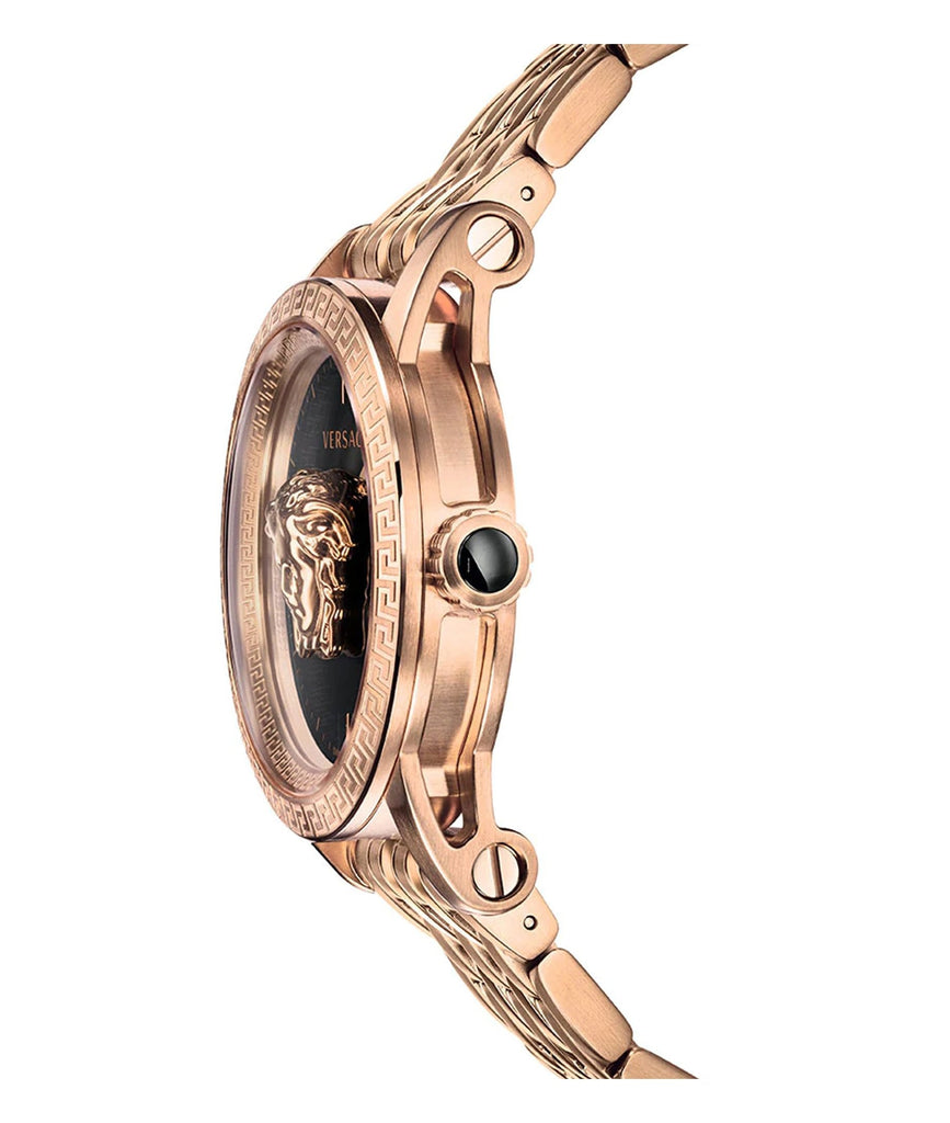 Versace Palazzo Empire Black Dial Rose Gold Steel Strap Watch for Men - VERD00718