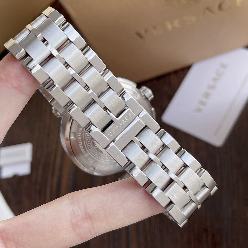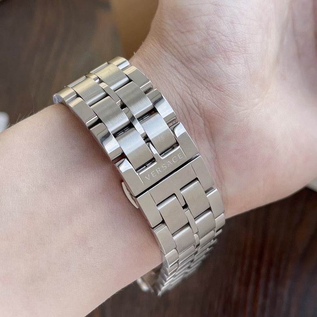 This Versace Quartz watch for men is the perfect blend of style and functionality. With a sleek black dial and a silver steel strap, it adds a touch of sophistication to any outfit. Plus, its precise quartz movement ensures accurate timekeeping, making it a reliable accessory for everyday wear. Elevate your look with the Versace Quartz Black Dial Silver Steel Strap Watch for Men!