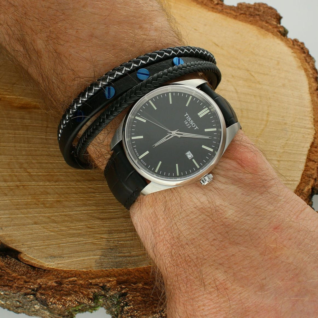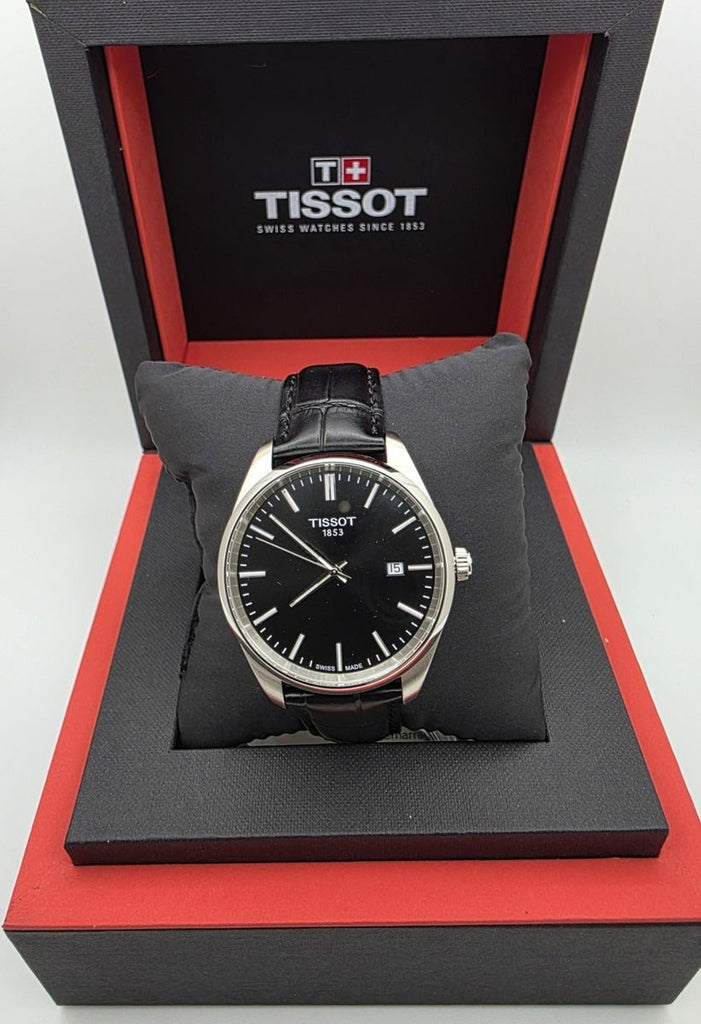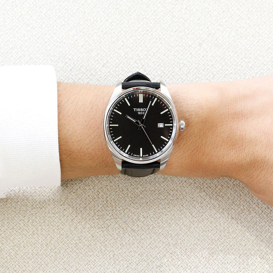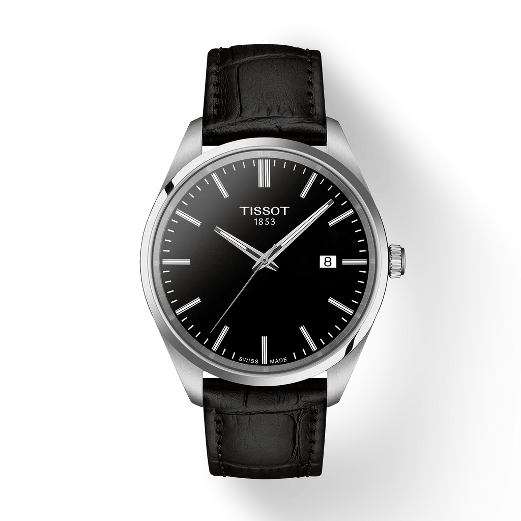 The Tissot PR 100 combines timeless elegance with Swiss precision engineering. This men's watch features a striking black dial paired with a refined black leather strap, delivering a sophisticated look suitable for both professional and casual settings. Powered by a reliable quartz movement, the PR 100 offers accurate timekeeping with minimal maintenance. The polished stainless steel case provides durability and a premium finish, while the classic design ensures versatility across any wardrobe. With its understated aesthetic and Swiss heritage, this timepiece makes an excellent choice for those seeking a dependable watch that transcends trends. The model T150.410.16.051.00 represents Tissot's commitment to quality craftsmanship at an accessible price point.