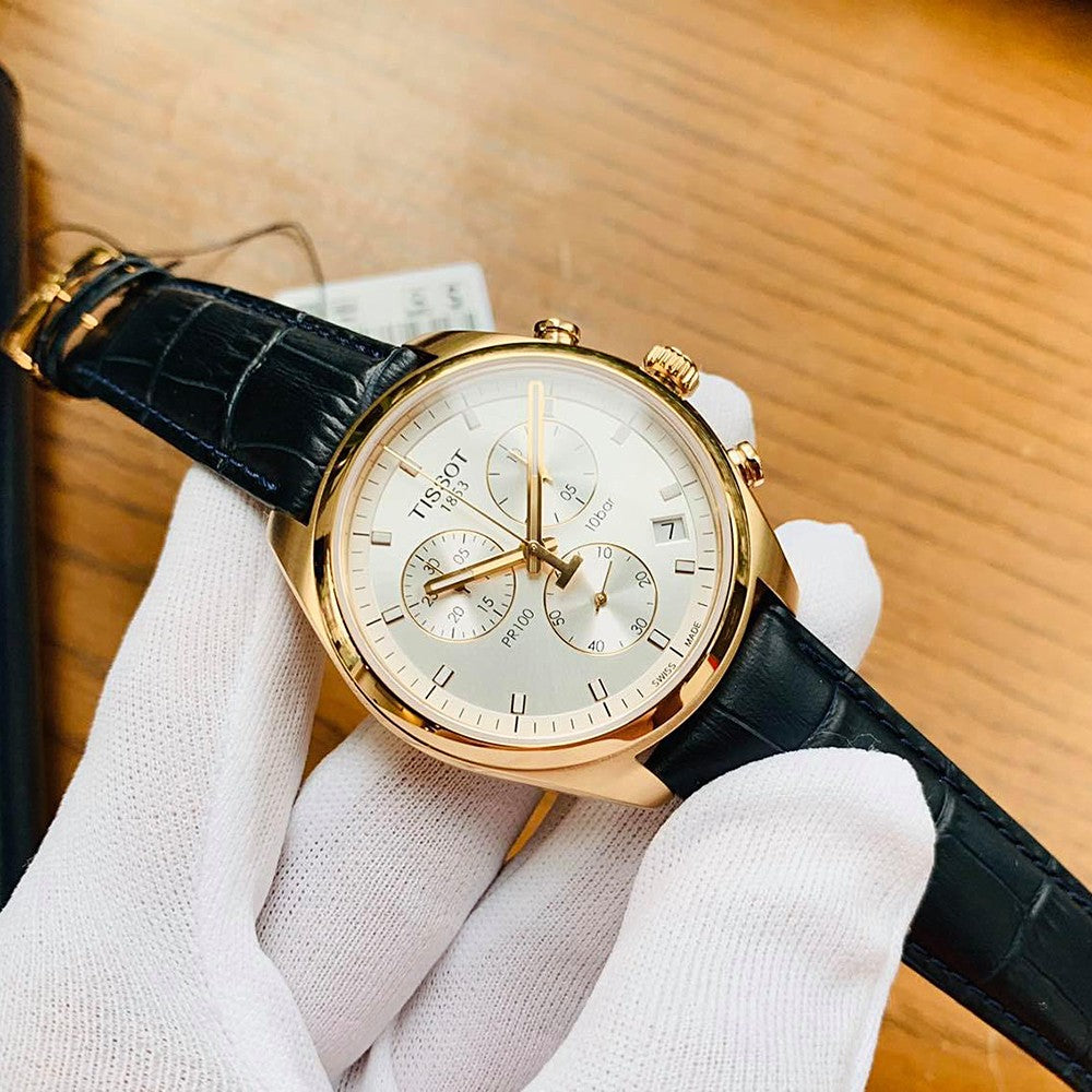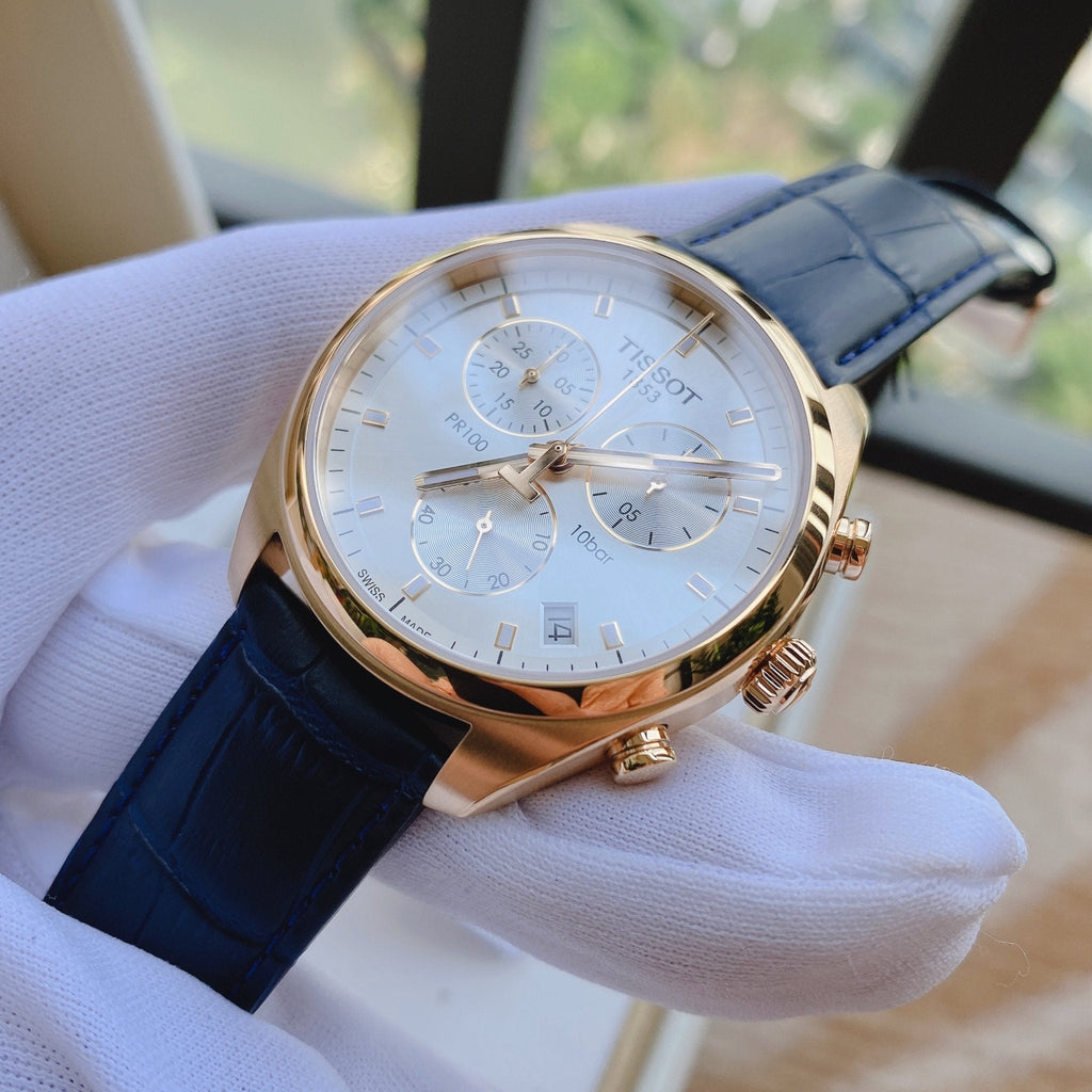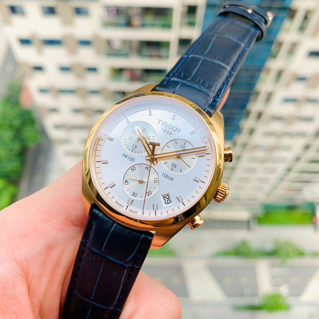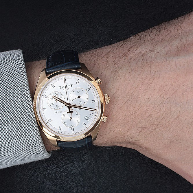 The Tissot T Classic PR 100 Chronograph Watch for Men is a stylish and functional timepiece. The silver dial and black leather strap create a timeless look, while the chronograph feature allows for precise timekeeping. With the reliability and quality of Tissot, this watch is a must-have for any man's collection.
