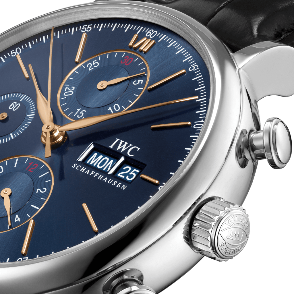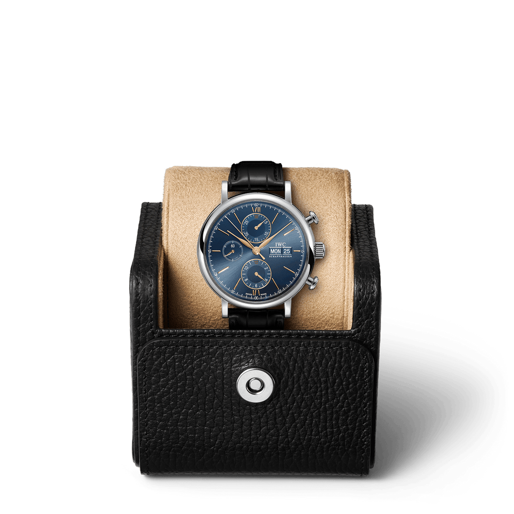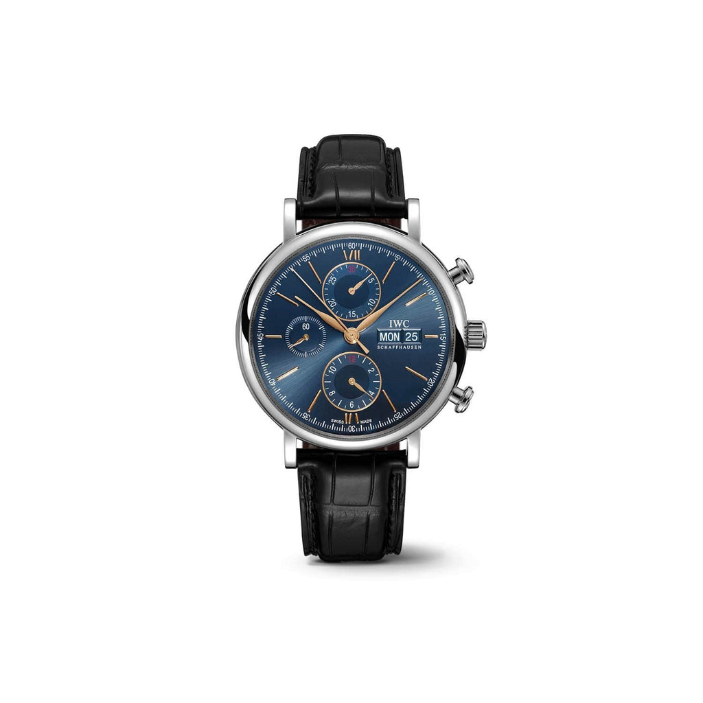 Description: 42mm- Stainless steel case, Automatic, self-winding, Diameter 42.0 mm, Black alligator leather strap, Strap width 20.0 mm. Made in Switzerland.
