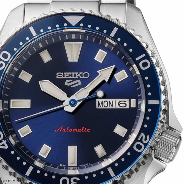 Powered by the in-house built 4R36 automatic movement, this watch is accurate to +45 /-35 seconds per day with a 40-hour power reserve. Seiko 5 Sports is known for over fifty years of reliability, durability, performance and value. '5' represents the original five key features of every Seiko 5 still present today: Automatic movement, Day-date display, Water Resistance, Recessed crown and Durable case and bracelet.
